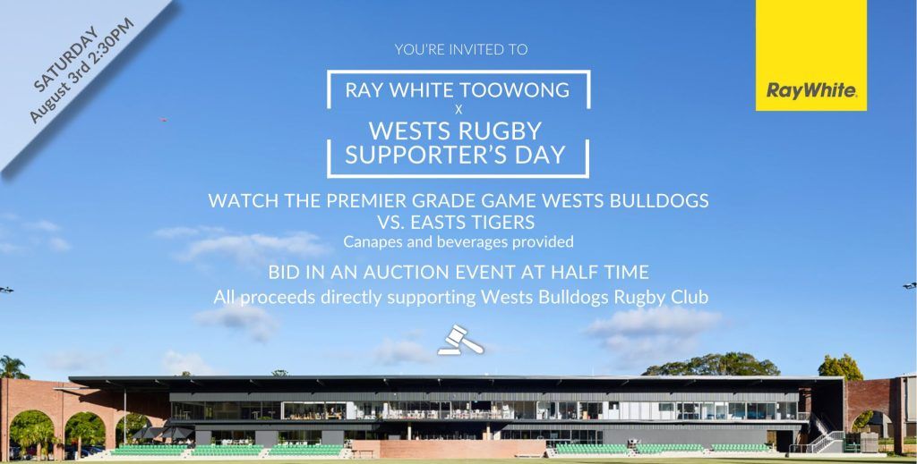 We are pleased to invite you to our annual Ray White Toowong / Wests Rugby Supporters Day to watch our beloved Western Bulldogs take on Easts Tigers on Saturday 3rd August.